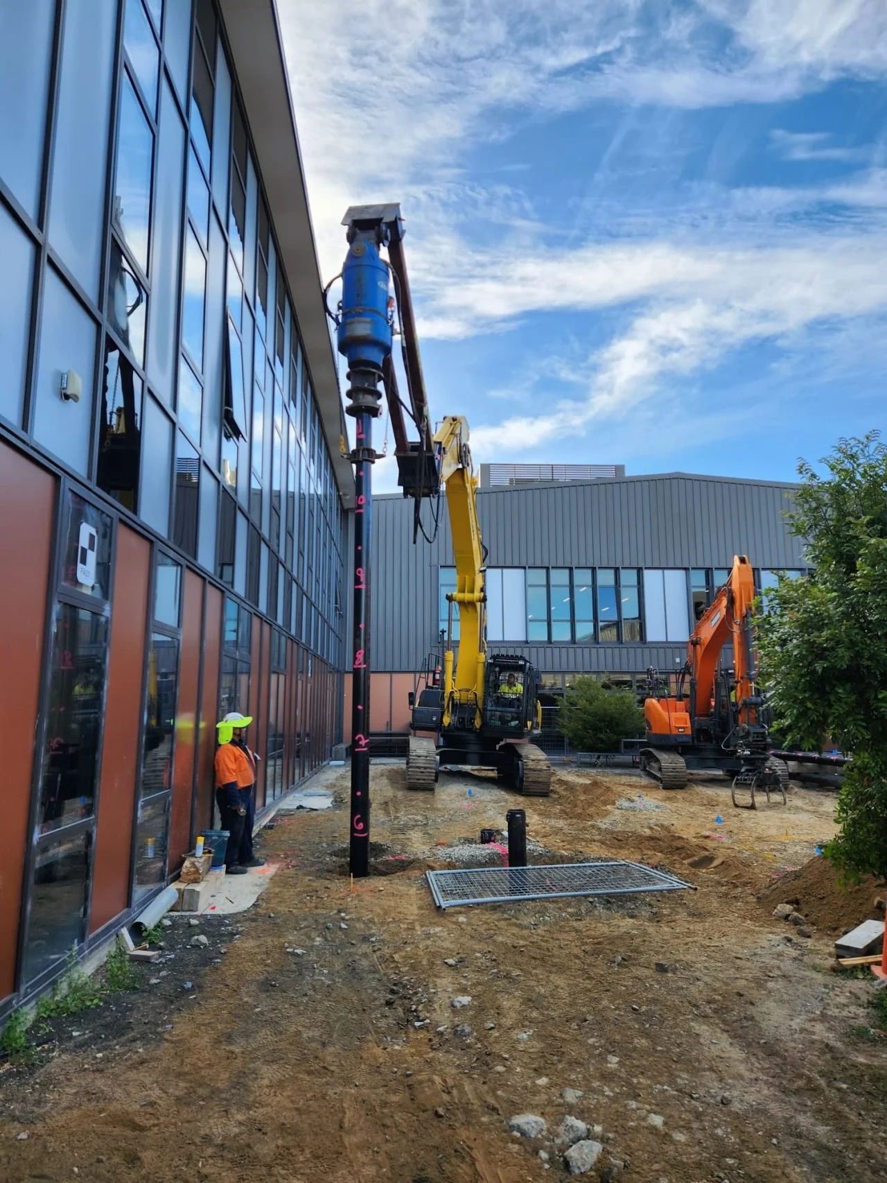 (i) NO VIBRATION: the installation of screw piles causes less vibration that tracking the excavator into position. This means less chance of damaging the adjacent building and services/utilities that will run underground.